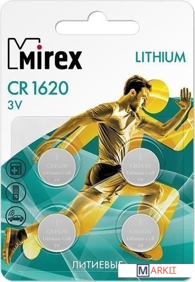 Markit » Батарейки, аккумуляторы, зарядные » Батарейка Mirex CR1620 литиевая блистер 4 шт. 23702-CR1620-E4