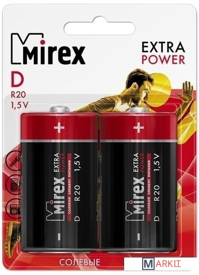 Markit » Батарейки, аккумуляторы, зарядные » Батарейка Mirex Extra Power D 2 шт 23702-ER20-E2