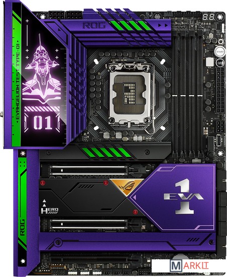 На календаре год 2022, и Республика геймеров запускает новую серию устройств, вдохновленных вселенной «Евангелион». Цвет материнской платы ROG Maximus Z690 Hero EVA Edition – классическое сочетание фиолетового и зеленого мехи EVA-01. Эстетику «Евангелиона» продолжают рисунок АТ-поля вокруг процессорного разъема и иллюминация Polymo на кожухе интерфейсной панели, которая работает в двух режимах: обычном и «берсерк». Уровень технологий тоже соответствует мощности мехи. Плата позволит выжать максимум из новейших процессоров Intel Core 12-го поколения за счет усиленной системы питания и эффективного охлаждения.Умные технологииПрограммное обеспечение, разработанное для материнских плат ASUS, задействует технологии искусственного интеллекта, чтобы сделать жизнь пользователей – будь то опытные энтузиасты или совершенные новички – еще комфортнее. На отдельных моделях оптимизация с помощью ИИ охватывает сразу четыре аспекта работы компьютера: разгон, охлаждение, сетевое подключение и звук.Радиатор системы питанияДля увеличения общей площади теплорассеивания радиатор системы питания соединен с алюминиевым кожухом интерфейсной панели встроенной тепловой трубкой.Чипсетный радиаторЗа поддержание надлежащей рабочей температуры чипсета отвечает отдельный радиатор.Радиаторы M.2Благодаря трем специальным радиаторам твердотельные накопители, установленные в слоты M.2, смогут показать свою максимальную производительность без угрозы перегрева.ПерсонализацияНа кожухе интерфейсной панели платы ROG Maximus Z690 Hero находится яркая иллюминация Polymo с двумя режимами работы. Она сделает собранный компьютер еще более красивым.